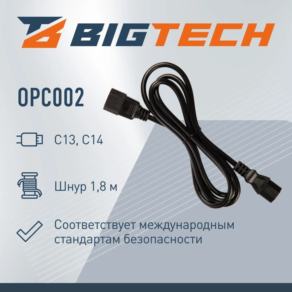 Кабель питания C13(F)-C14, 10А, 0,75мм2, 1.8м, чер (OPC002)