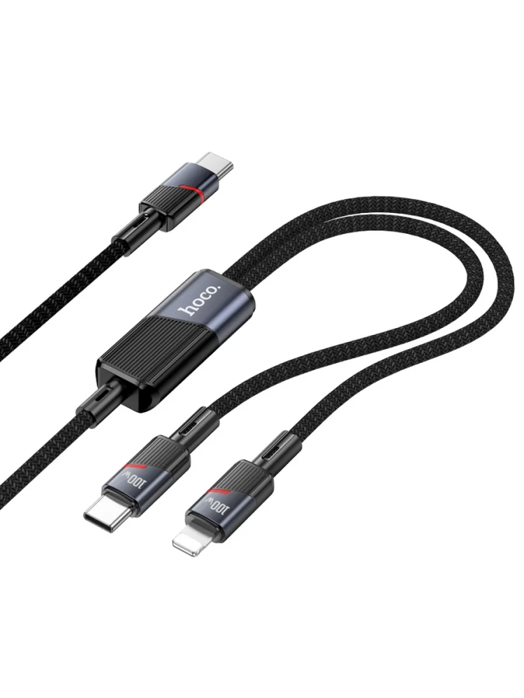 Кабель с 1 Type-C на 1 Type-C и 1 Lightning, U139, HOCO, 100W, черный