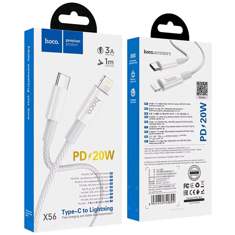Кабель Type-C на Lightning 1M 20W X56 HOCO белый