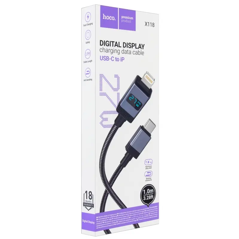 Кабель Type-C на Lightning 1M 27W X118 HOCO черный