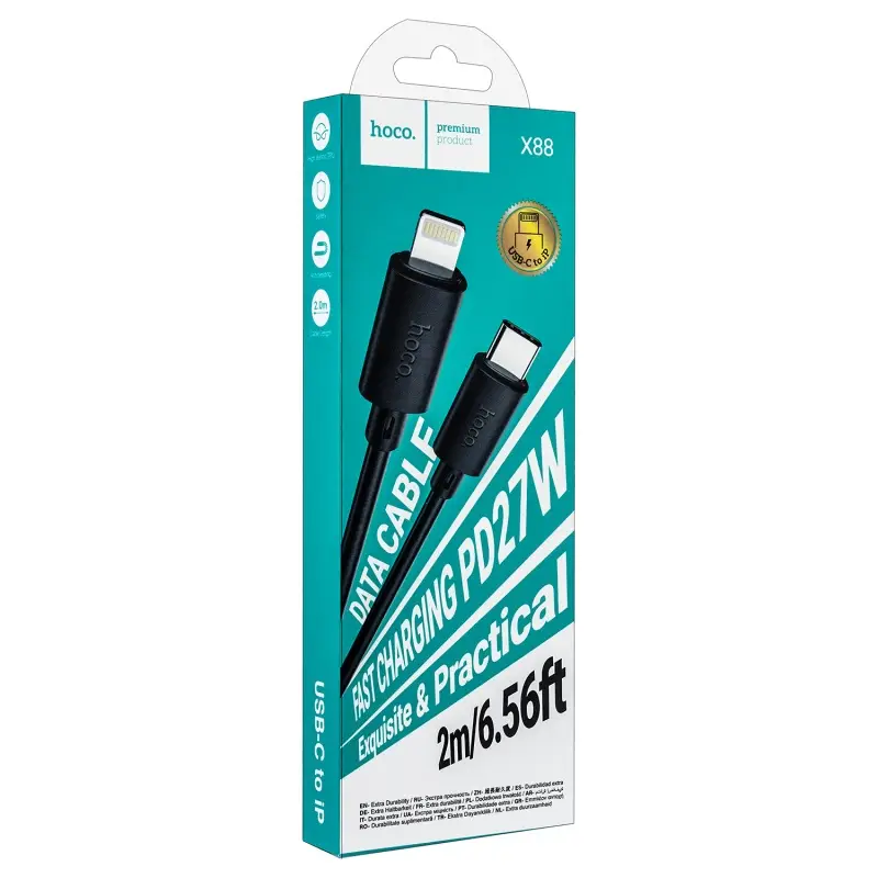 Кабель Type-C на Lightning 2M 27W X88 HOCO черный