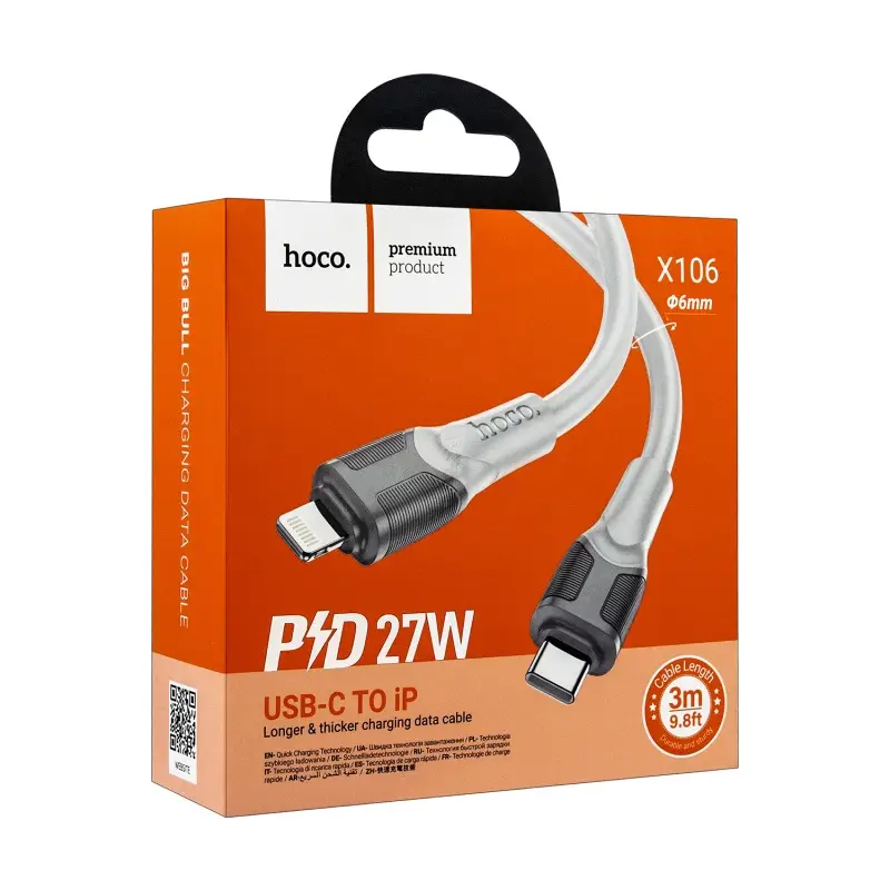 Кабель Type-C на Lightning 3M 27W X106 HOCO серый