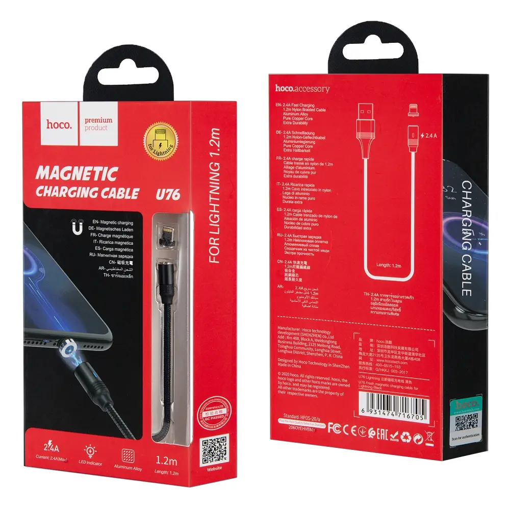 * Кабель U76 USB на Lightning 1M 2.4А магнитный HOCO черный