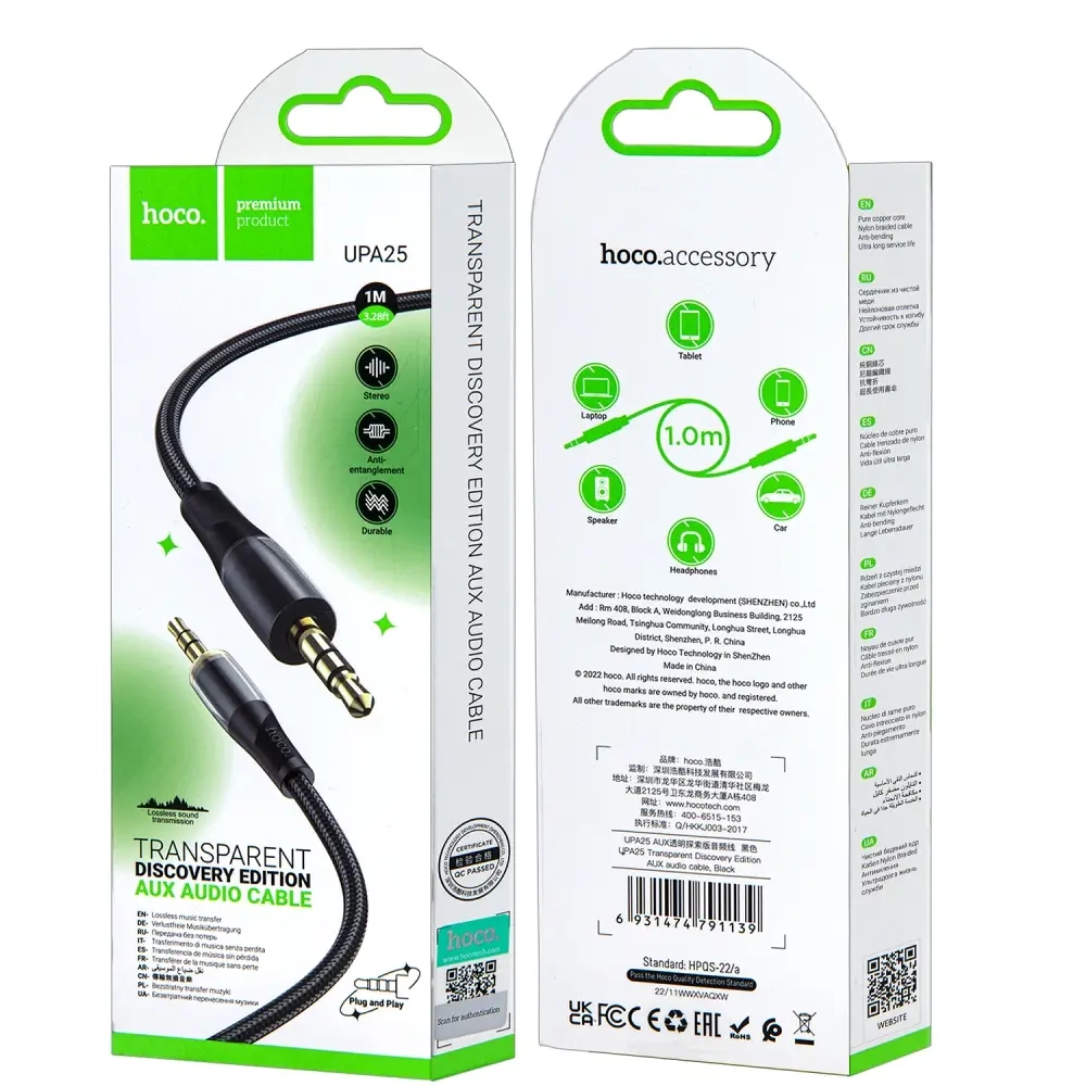 *Кабель UPA25 AUX 1M HOCO черный