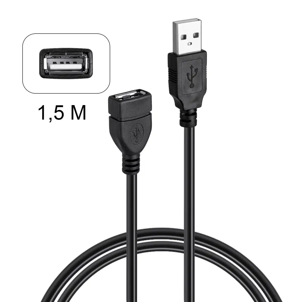 Кабель USB 2.0 удлинитель 1.5M черный