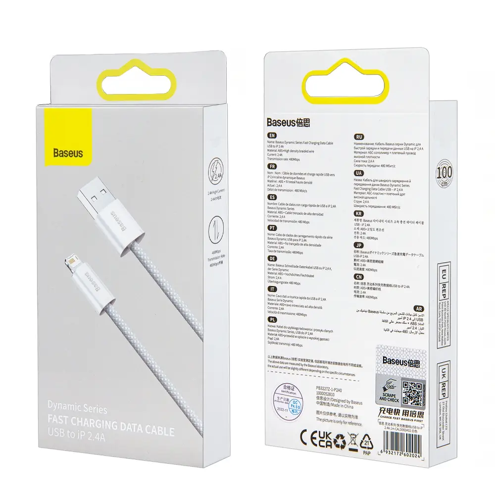 Кабель USB Lightning 1M 2.4A Dynamic series fast Charging Cable Baseus белый CALD000402