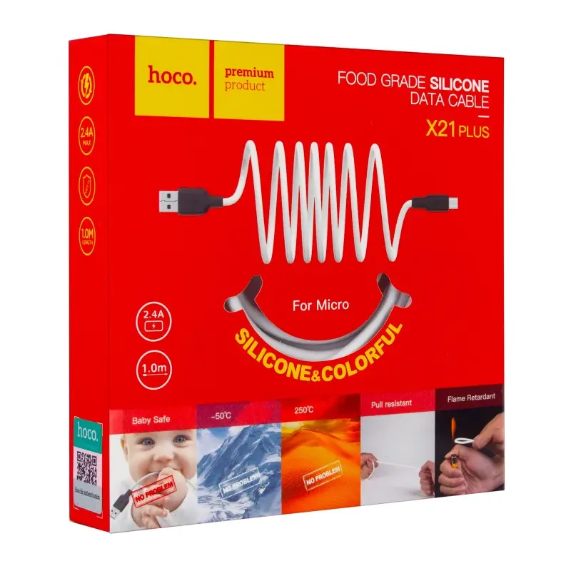 Кабель USB на MicroUSB 1M 2.4A X21 Plus HOCO белый