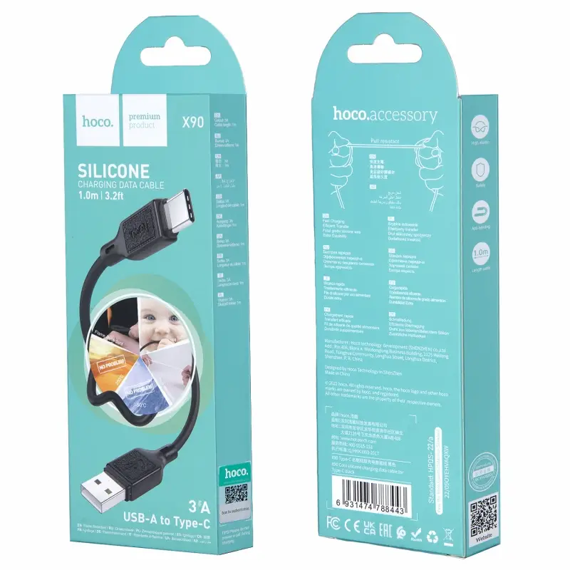 Кабель USB на Type-C 1M 3A X90 HOCO черный