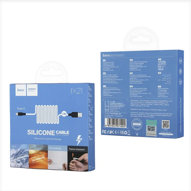 Кабель USB на Type-C 1M X21 HOCO усиленный белый