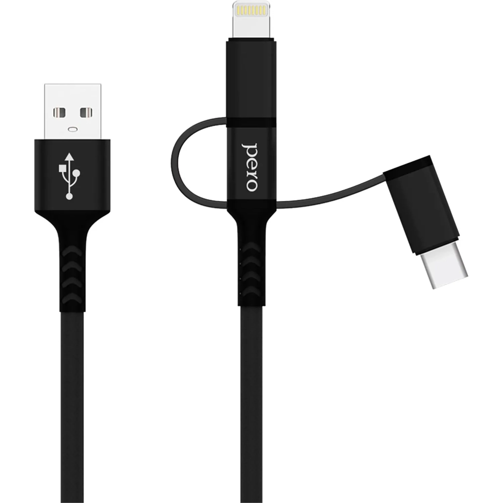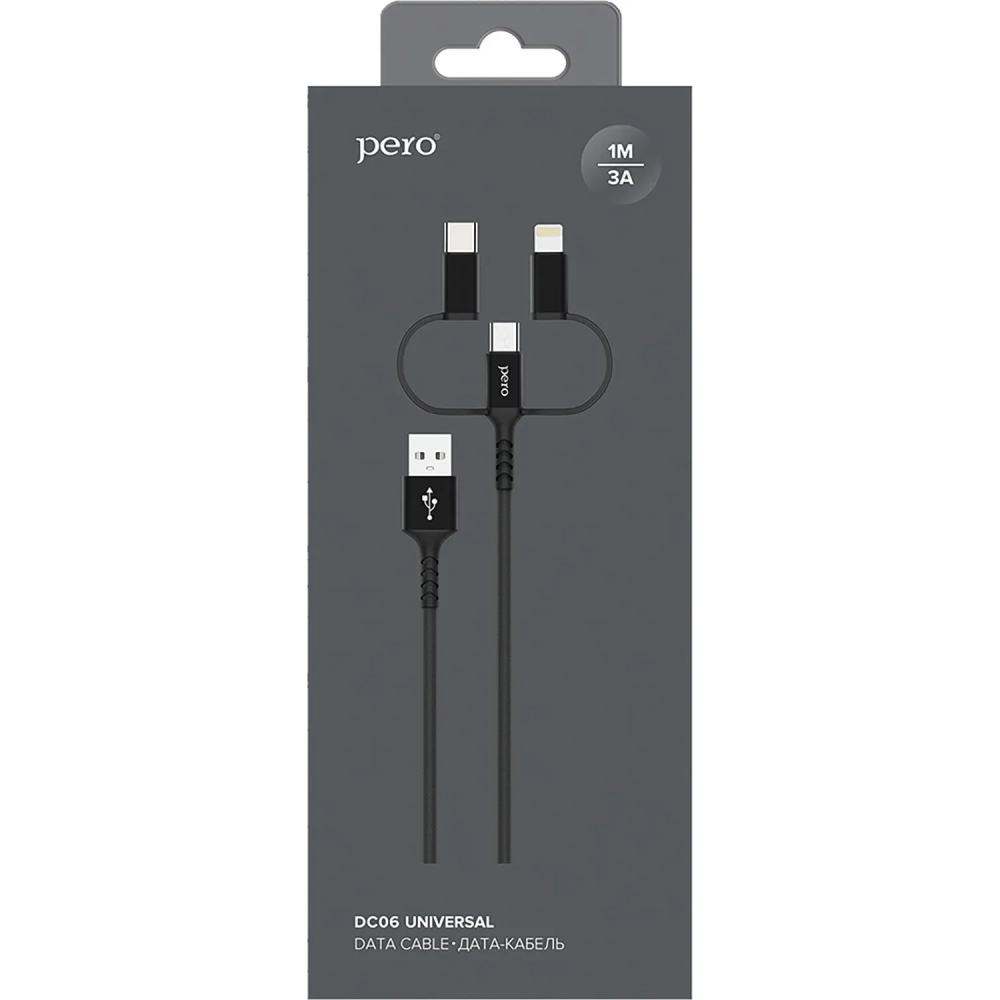Кабель USB PERO DC-06 3 in 1 (Lightning/micro USB/Type-C), 3А, 1м, черный