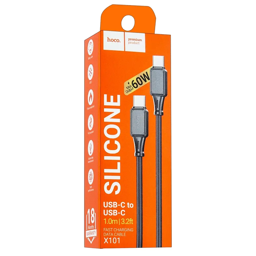 Кабель X101 Type-C на Type-C 1M 3A 60W HOCO черный