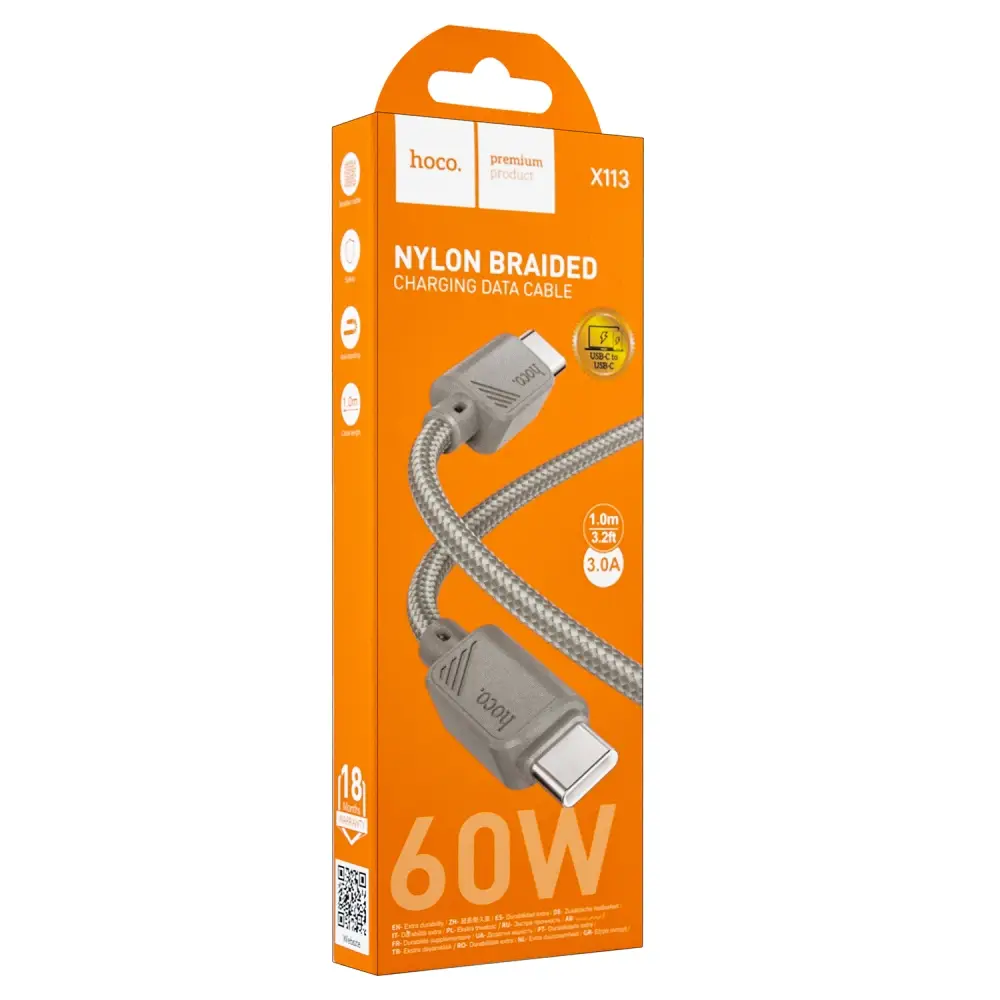 Кабель X113 Type-C на Type-C 1M 3A 60W HOCO серый