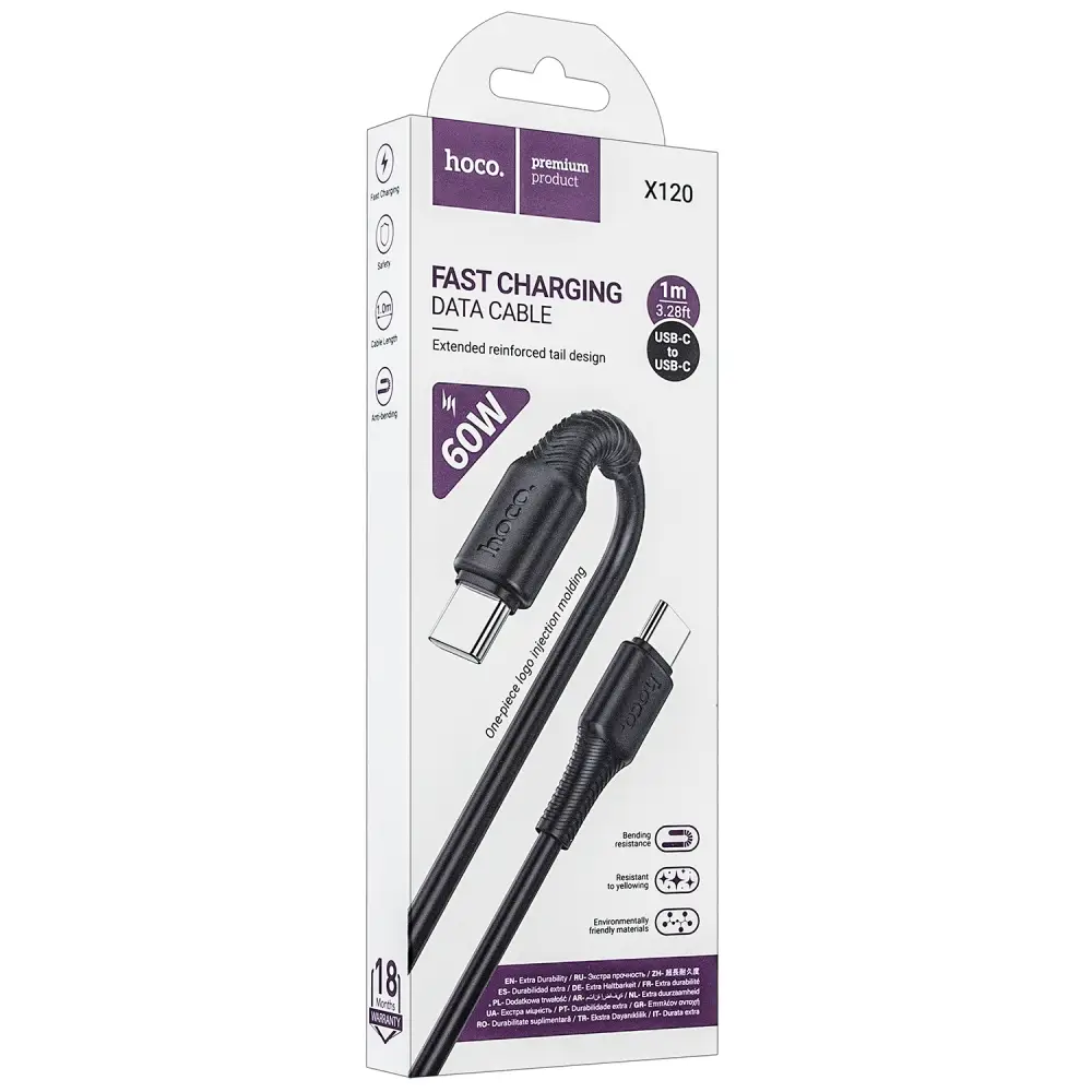 Кабель X120 Type-C на Type-C 1m 60W HOCO черный