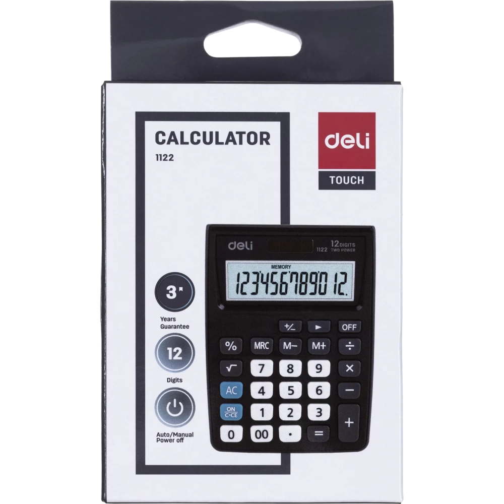 Калькулятор карманный Deli E1122, 12-р, дв.пит., 120х86мм, серый