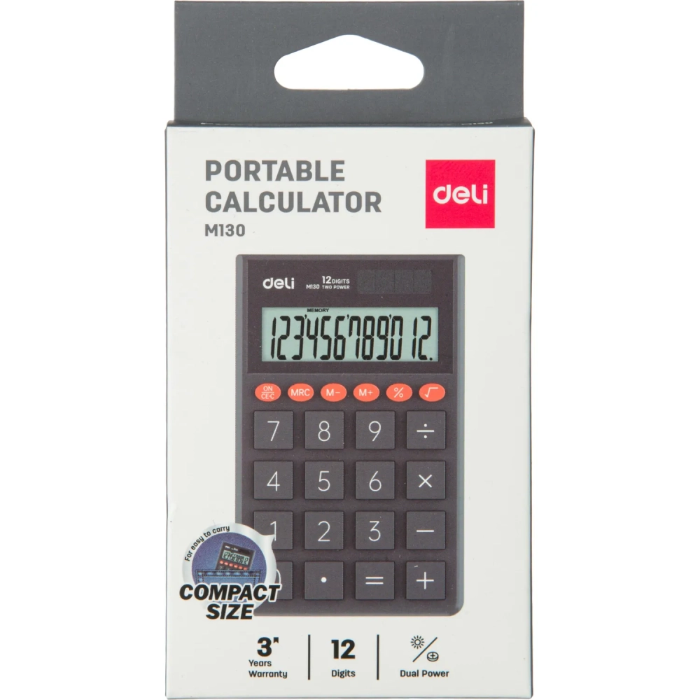 Калькулятор карманный Deli EM130, 12-р,дв.пит.,70.2x8.5x112.2 мм,темн-сер