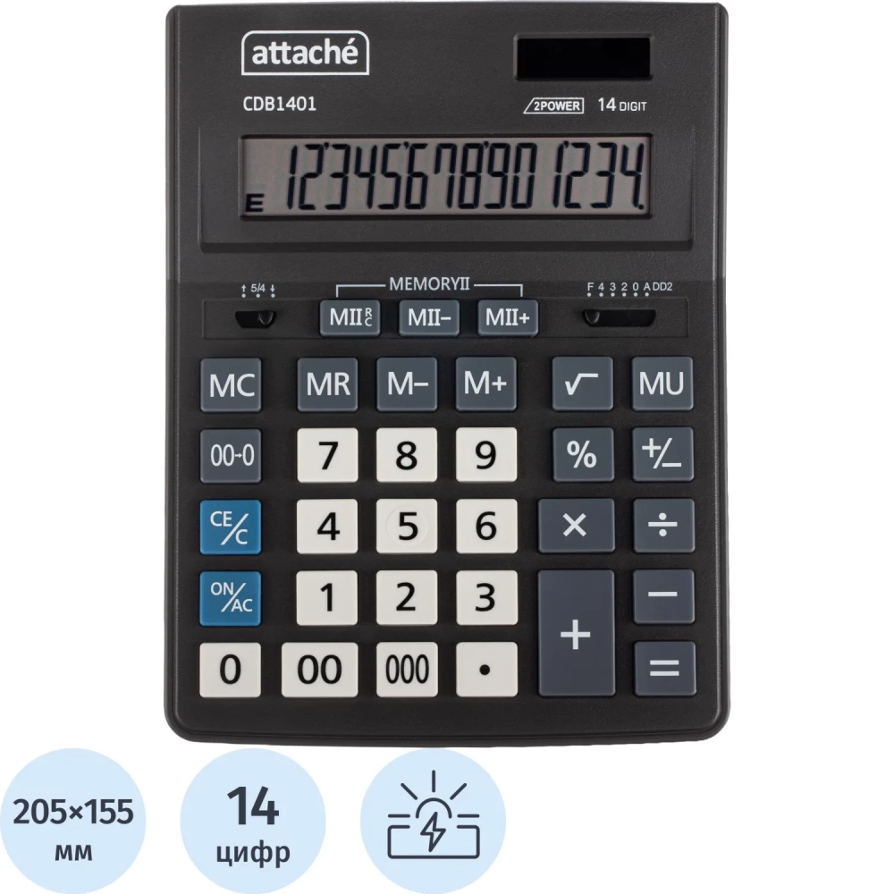 Калькулятор настольный Attache CDB1401-BK 14-разрядный черный 205x155x35 мм