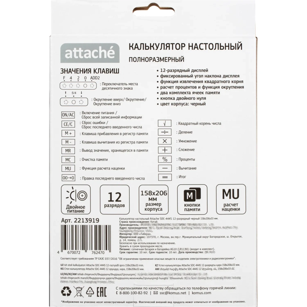 Калькулятор настольный Attache SDC-444S 12-разрядный черный 206х158х33мм