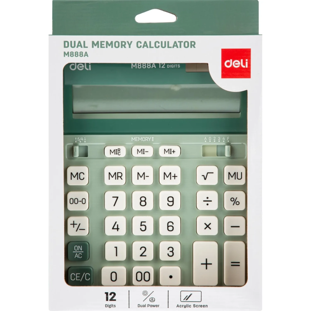 Калькулятор настольный Deli полноразм. EM888A, 12-ти разряд., мятн/бел