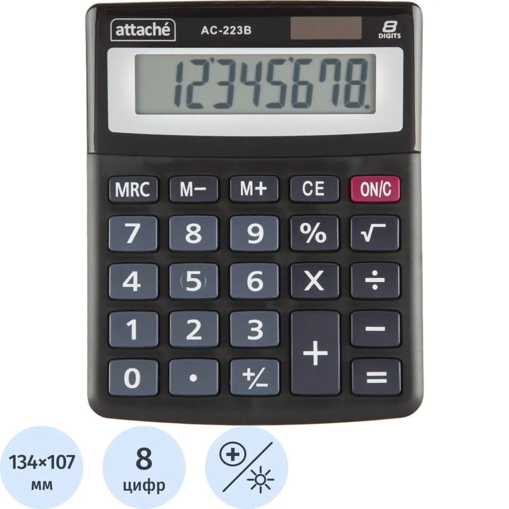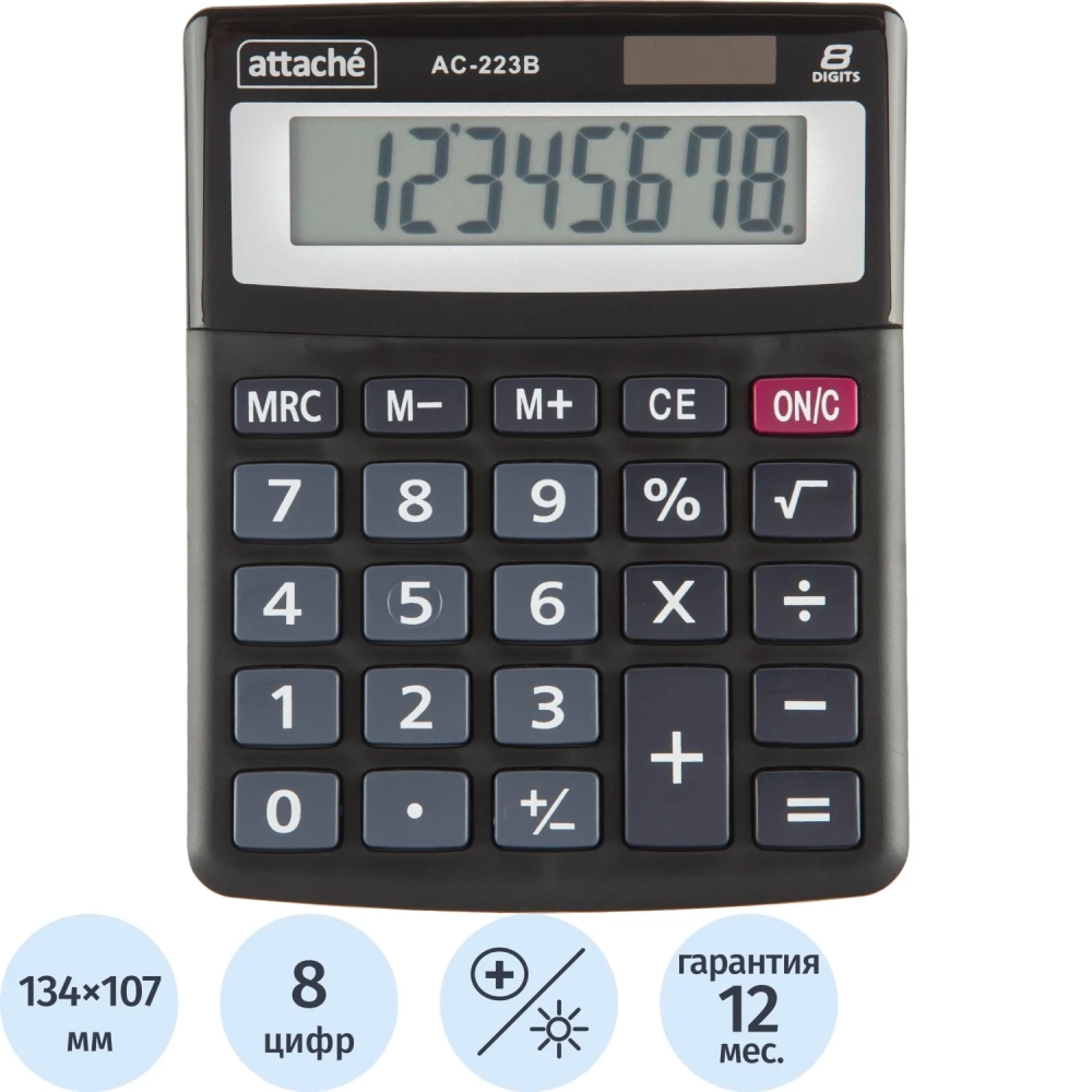 Калькулятор настольный КОМП Attache, AС-223B,8р,дв. пит, черн,134x107x34