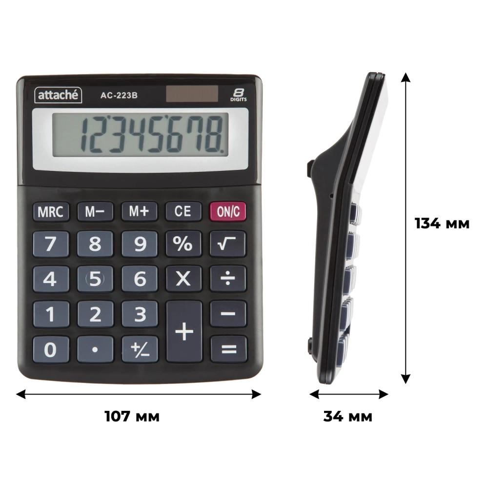 Калькулятор настольный КОМП Attache, AС-223B,8р,дв. пит, черн,134x107x34