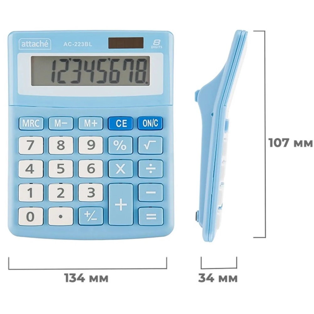 Калькулятор настольный КОМП Attache, AС-223BL,8р,дв. пит, голуб,134x107x34