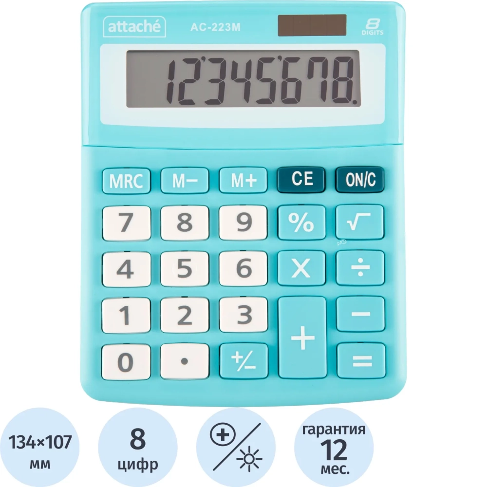 Калькулятор настольный КОМП Attache, AС-223M,8р,дв. пит, мятный,134x107x34