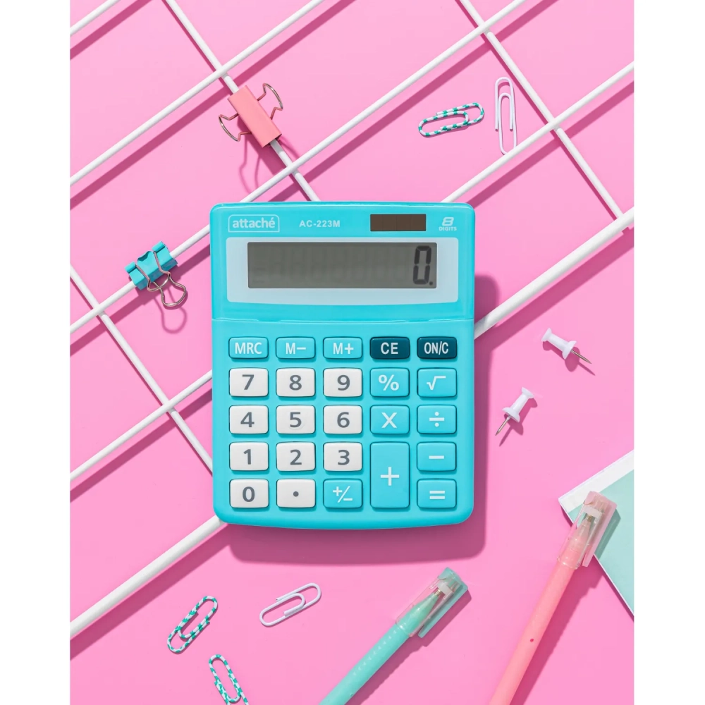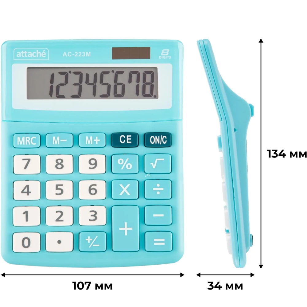 Калькулятор настольный КОМП Attache, AС-223M,8р,дв. пит, мятный,134x107x34