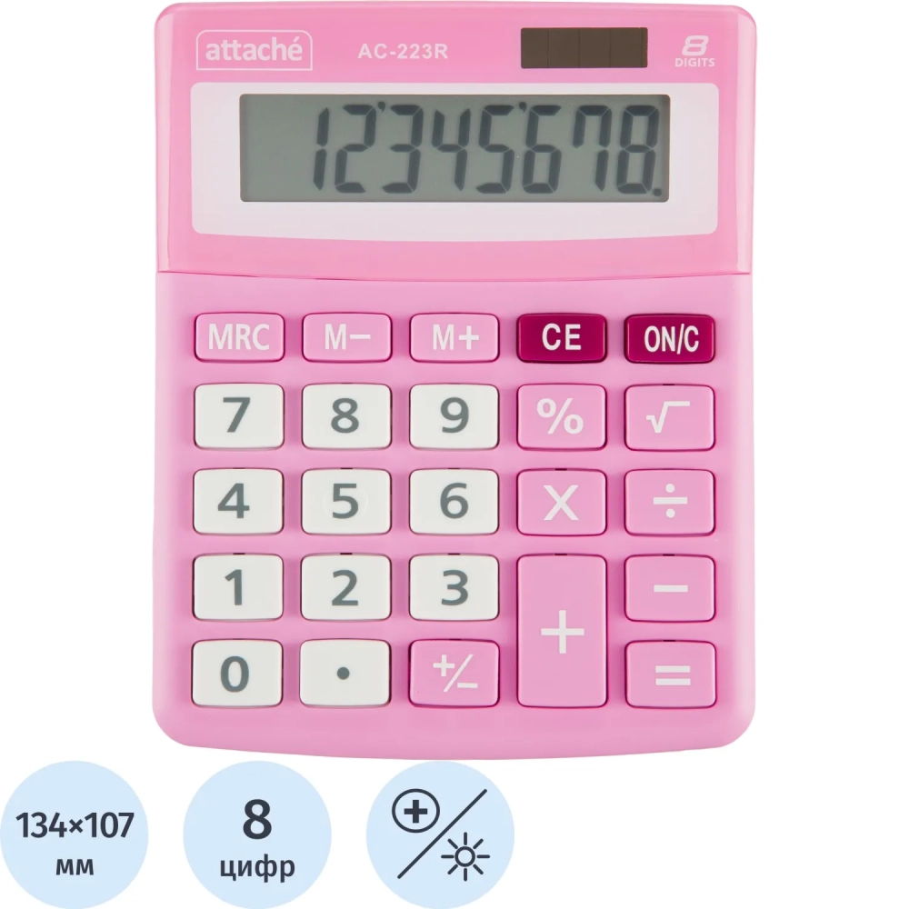 Калькулятор настольный КОМП Attache, AС-223R,8р,дв. пит, розовый,134x107x34