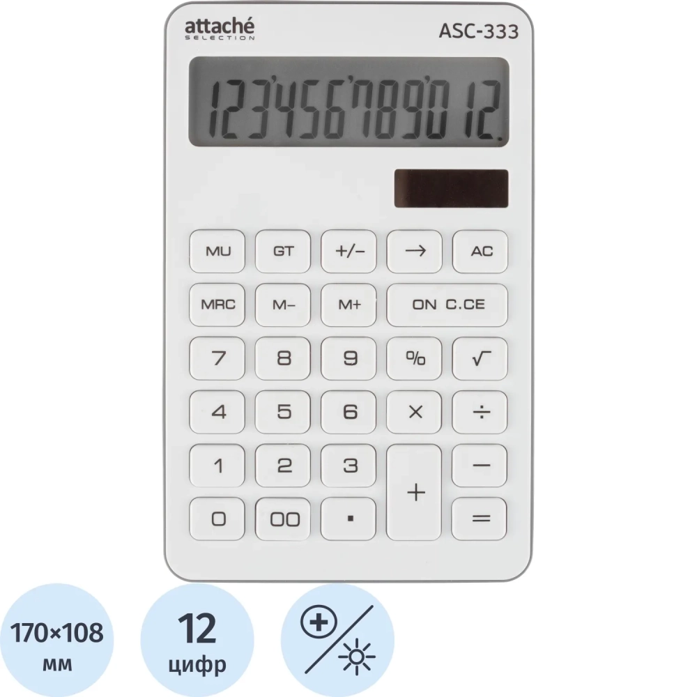 Калькулятор настольный КОМП Attache Selection ASС-333,12р,дв.пит,170x108бел