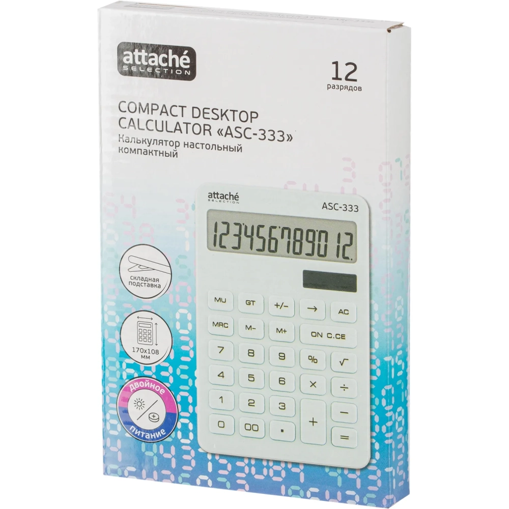Калькулятор настольный КОМП Attache Selection ASС-333,12р,дв.пит,170x108бел