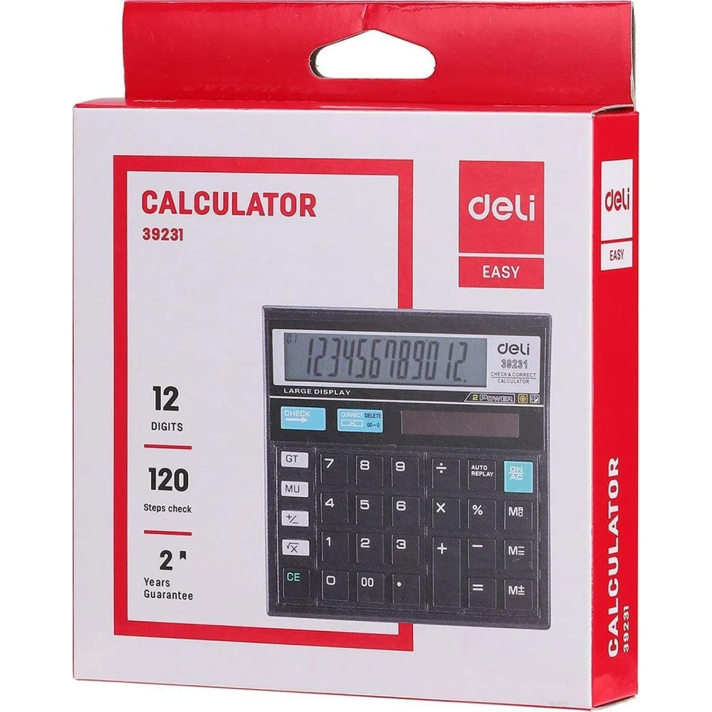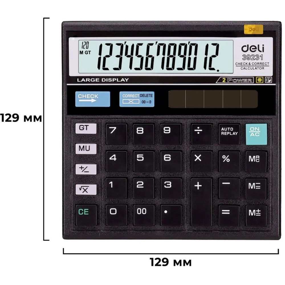 Калькулятор настольный КОМП. Deli E39231, 12-р, дв.пит., 129x129мм,черный