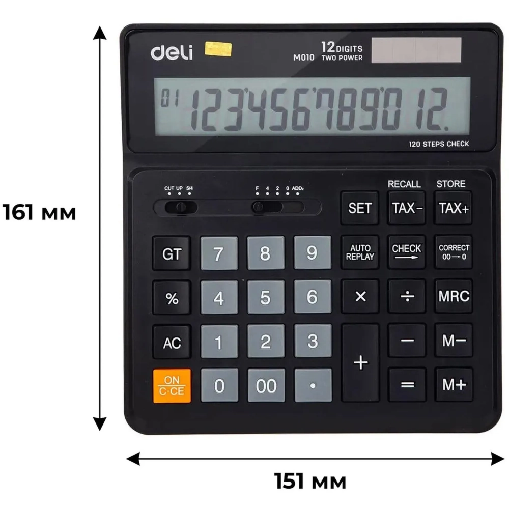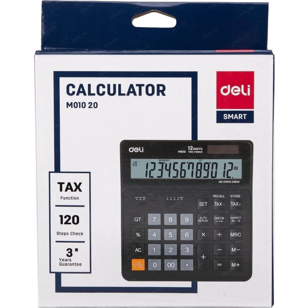 Калькулятор настольный КОМПАКТ Deli EM01020 черн 12-разр. Функ.вычис.налога