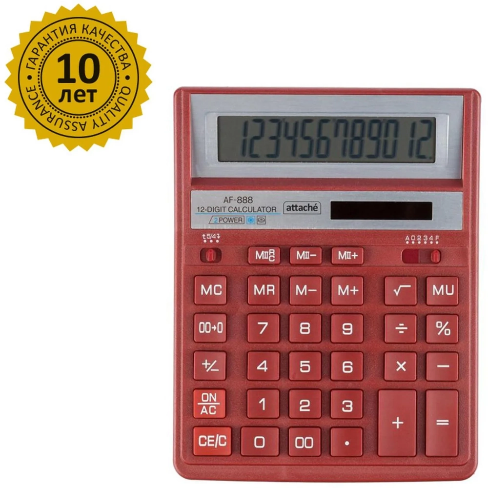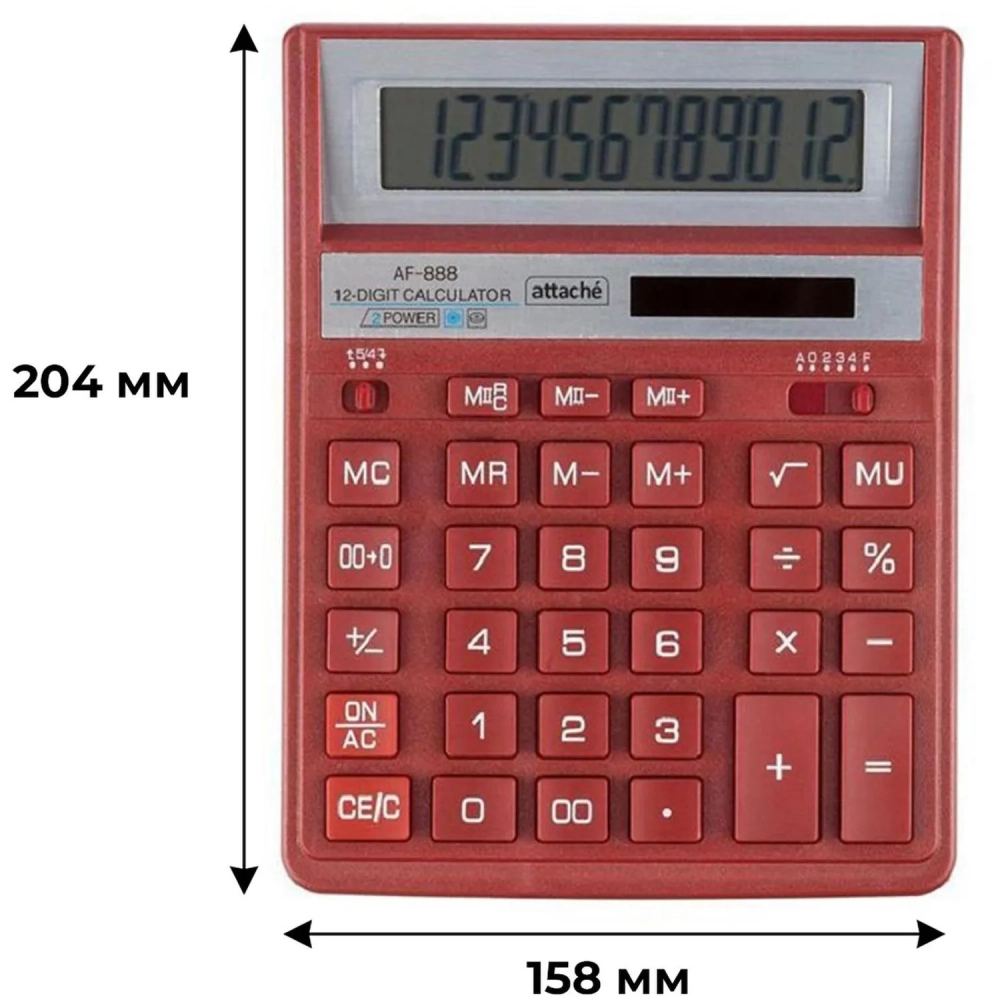 Калькулятор настольный ПОЛН.Attache AF-888,12р,дв.пит,204x158мм, темно-крас