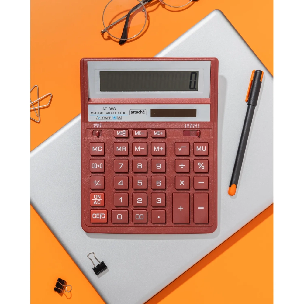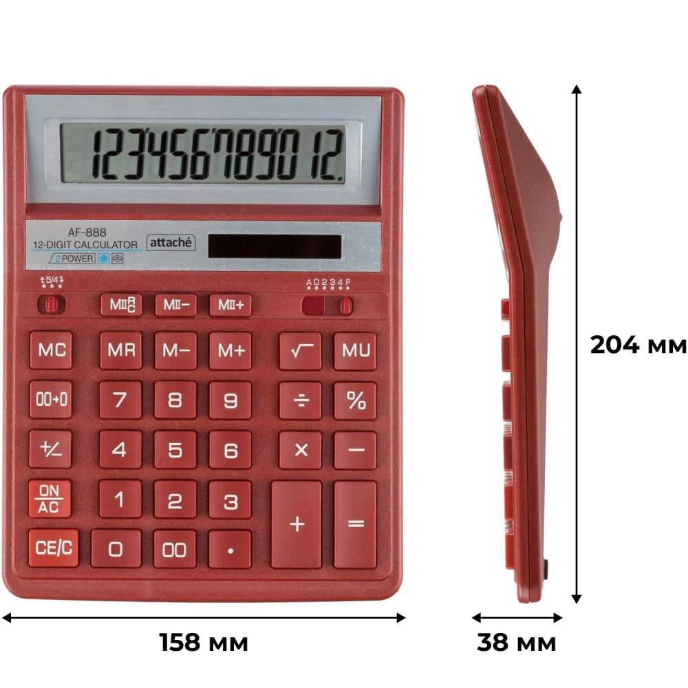 Калькулятор настольный ПОЛН.Attache AF-888,12р,дв.пит,204x158мм, темно-крас