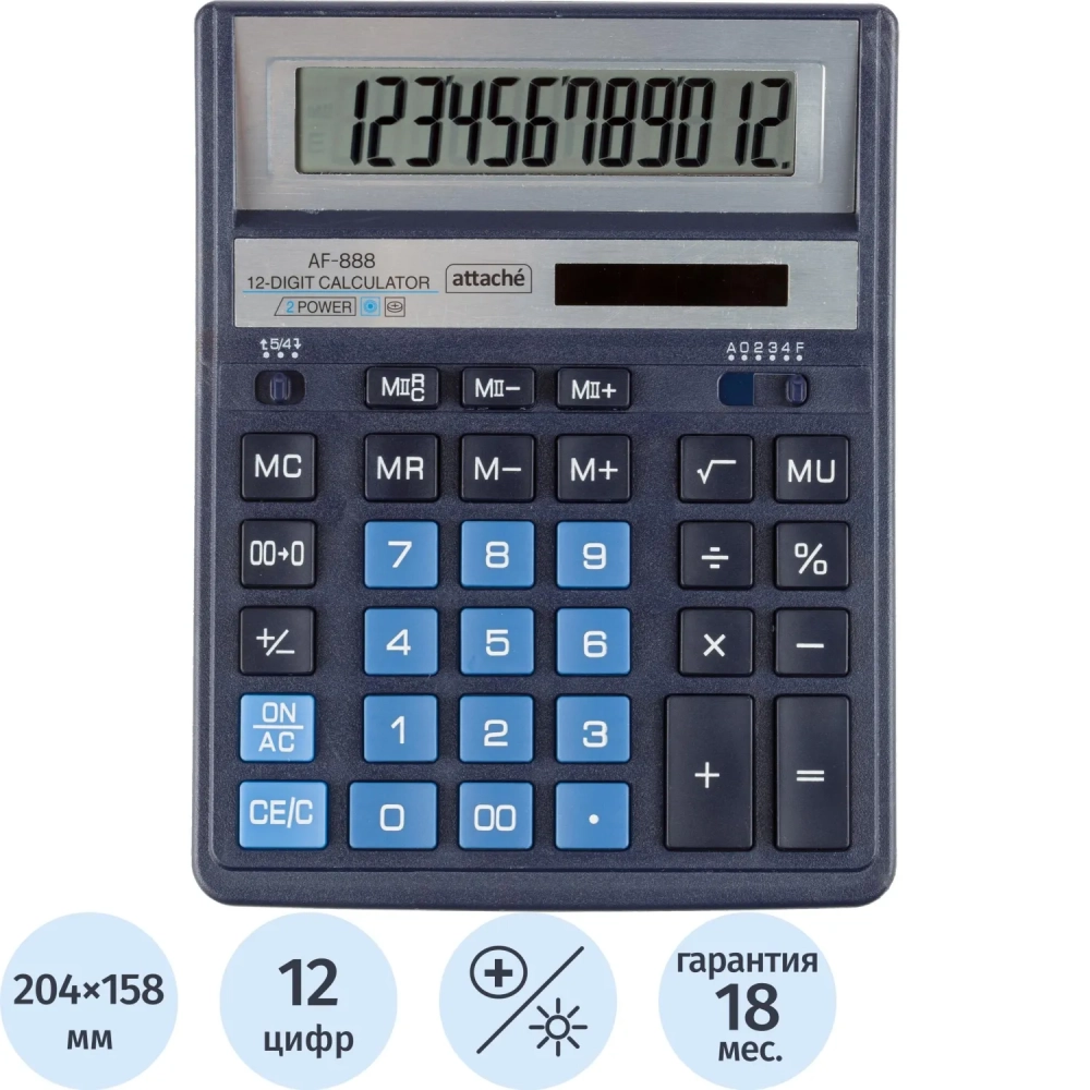 Калькулятор настольный ПОЛН.Attache AF-888,12р,дв.пит,204x158мм, темно-син