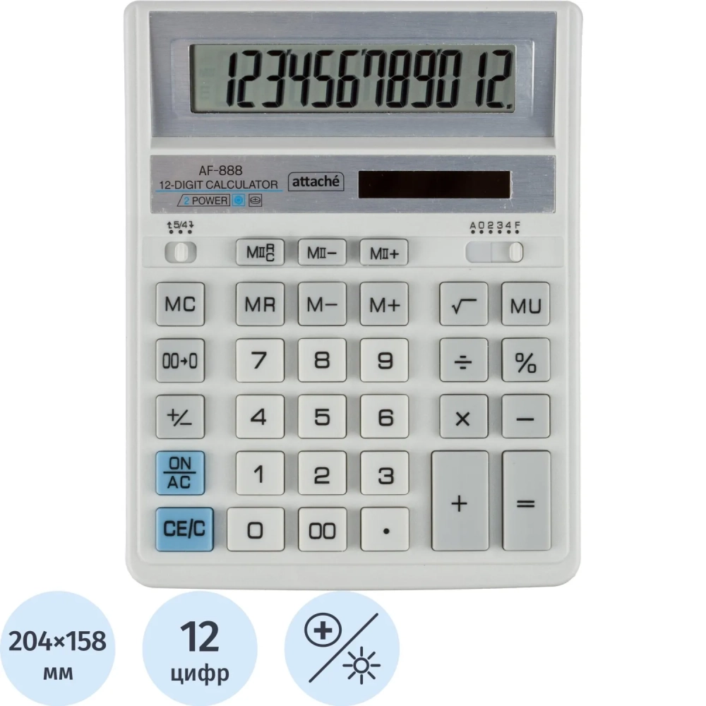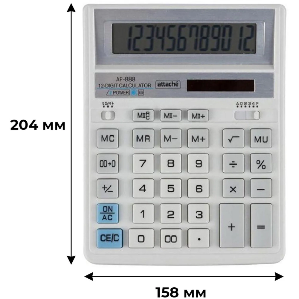 Калькулятор настольный ПОЛН/Р Attache AF-888,12р,дв.пит,204x158мм, белый