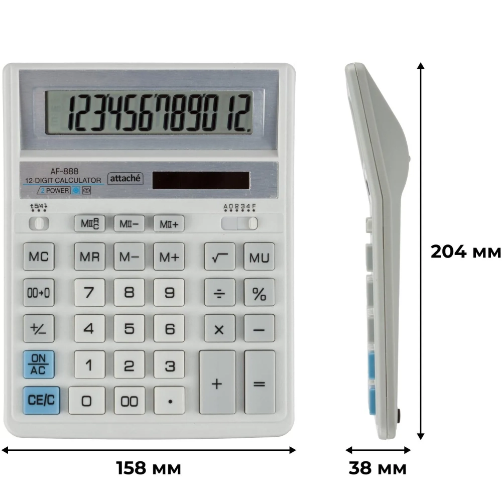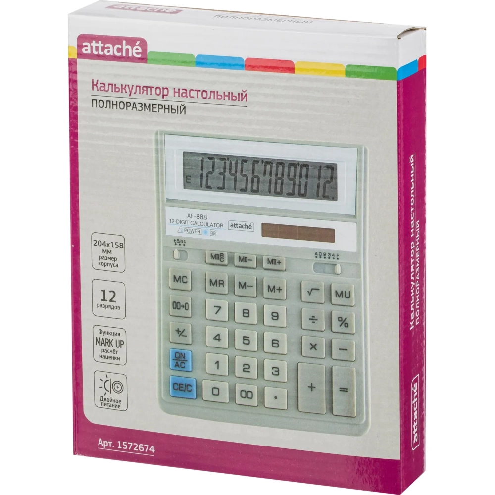 Калькулятор настольный ПОЛН/Р Attache AF-888,12р,дв.пит,204x158мм, белый