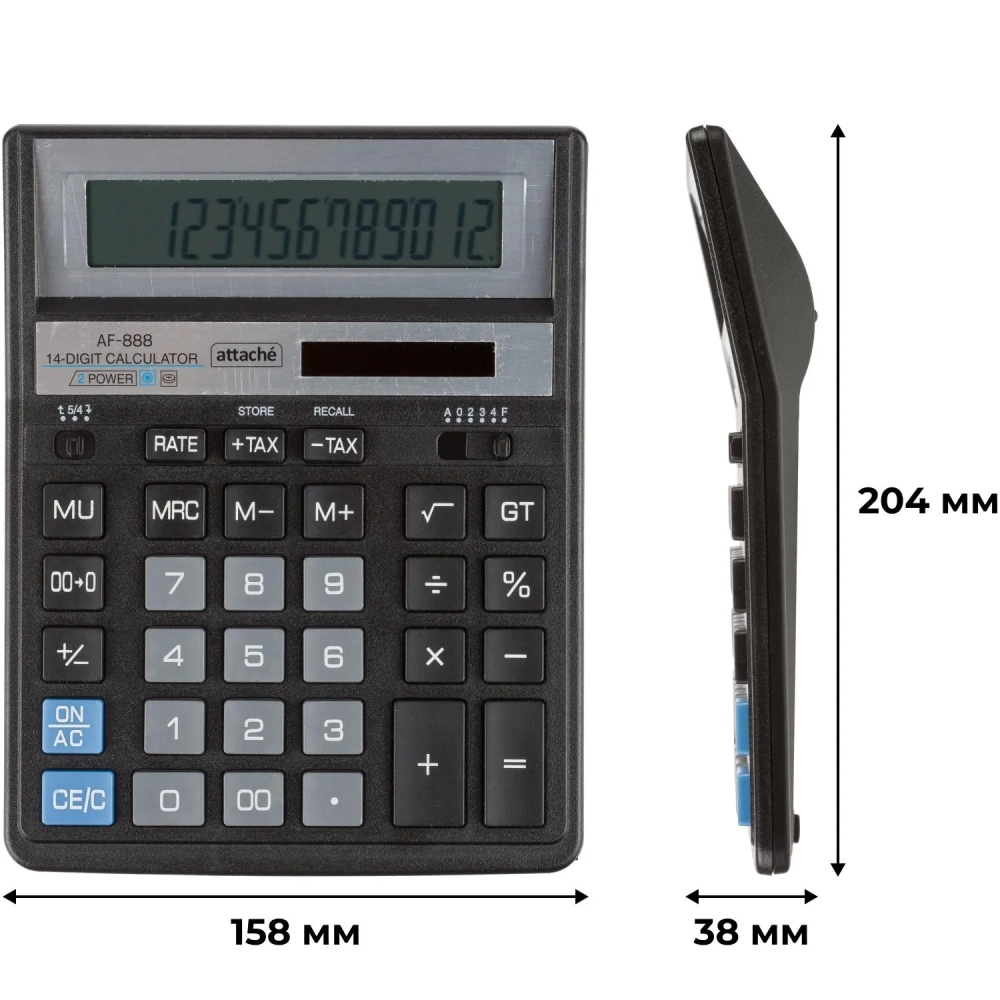 Калькулятор настольный ПОЛН/Р Attache AF-888,14р,дв.пит,204x158мм,черный