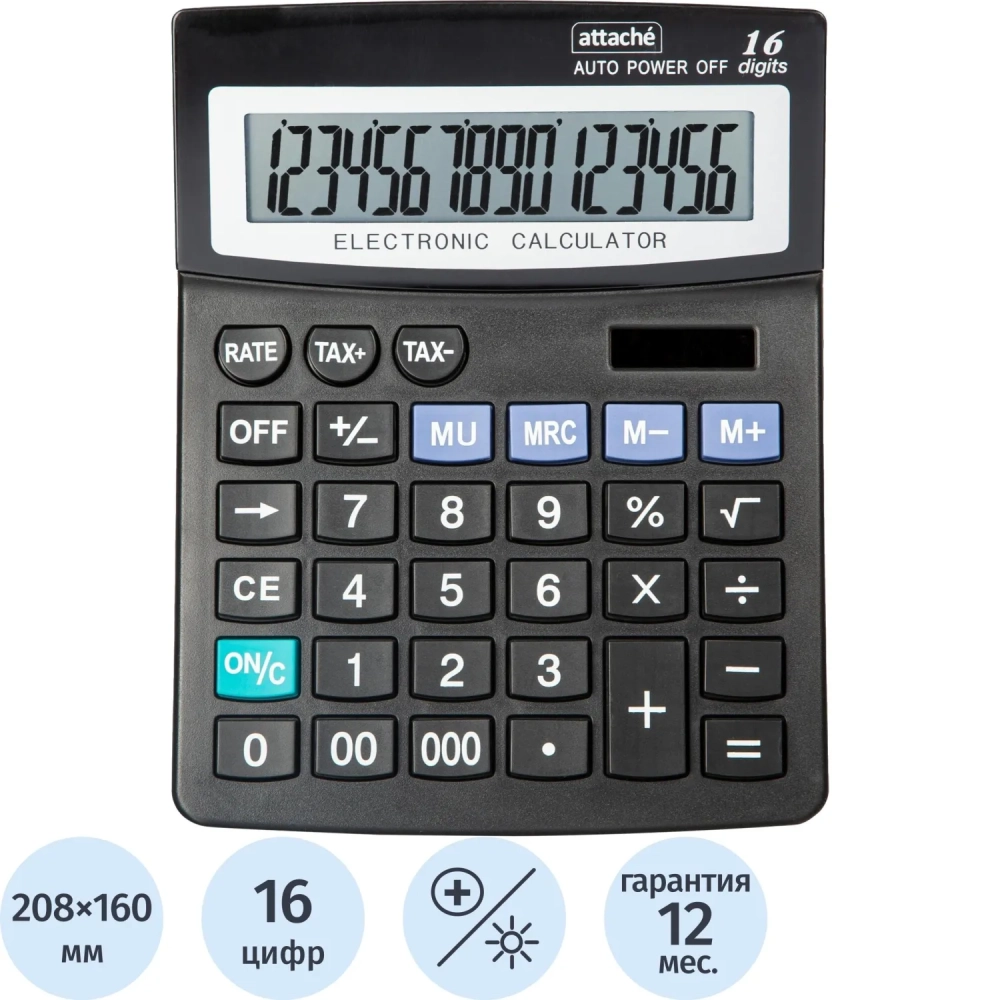 Калькулятор настольный ПОЛНОР Attache ATC-222-16F 16ти разр чер 208x160x48