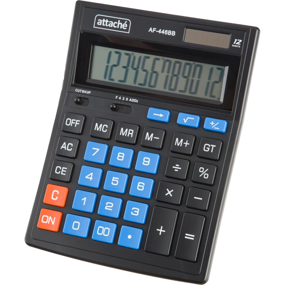 Калькулятор настольный ПОЛНОРАЗМ Attache AF-446BB,12р,дв.п,ч/син,203x153x48