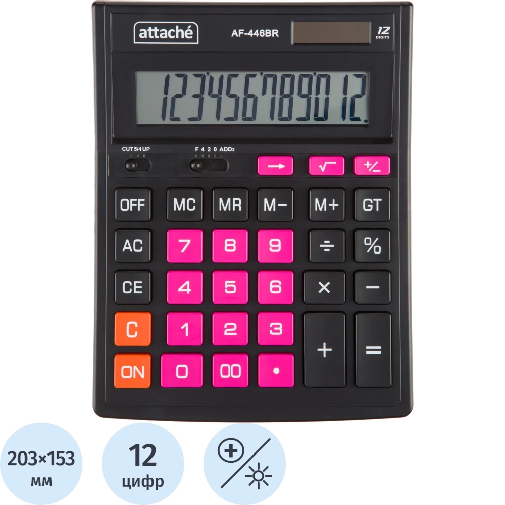 Калькулятор настольный ПОЛНОРАЗМ Attache AF-446BR,12р,дв.п,ч/роз,203x153x48