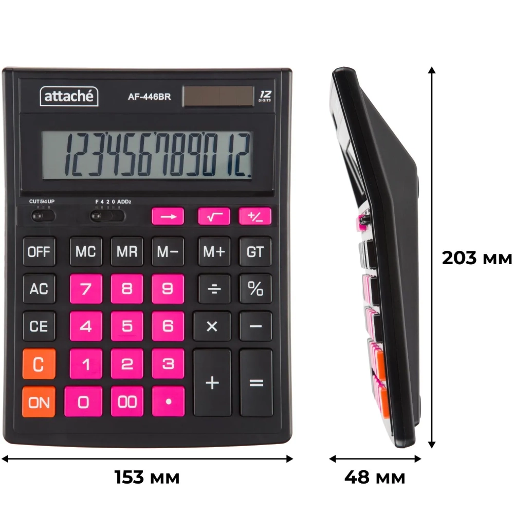 Калькулятор настольный ПОЛНОРАЗМ Attache AF-446BR,12р,дв.п,ч/роз,203x153x48