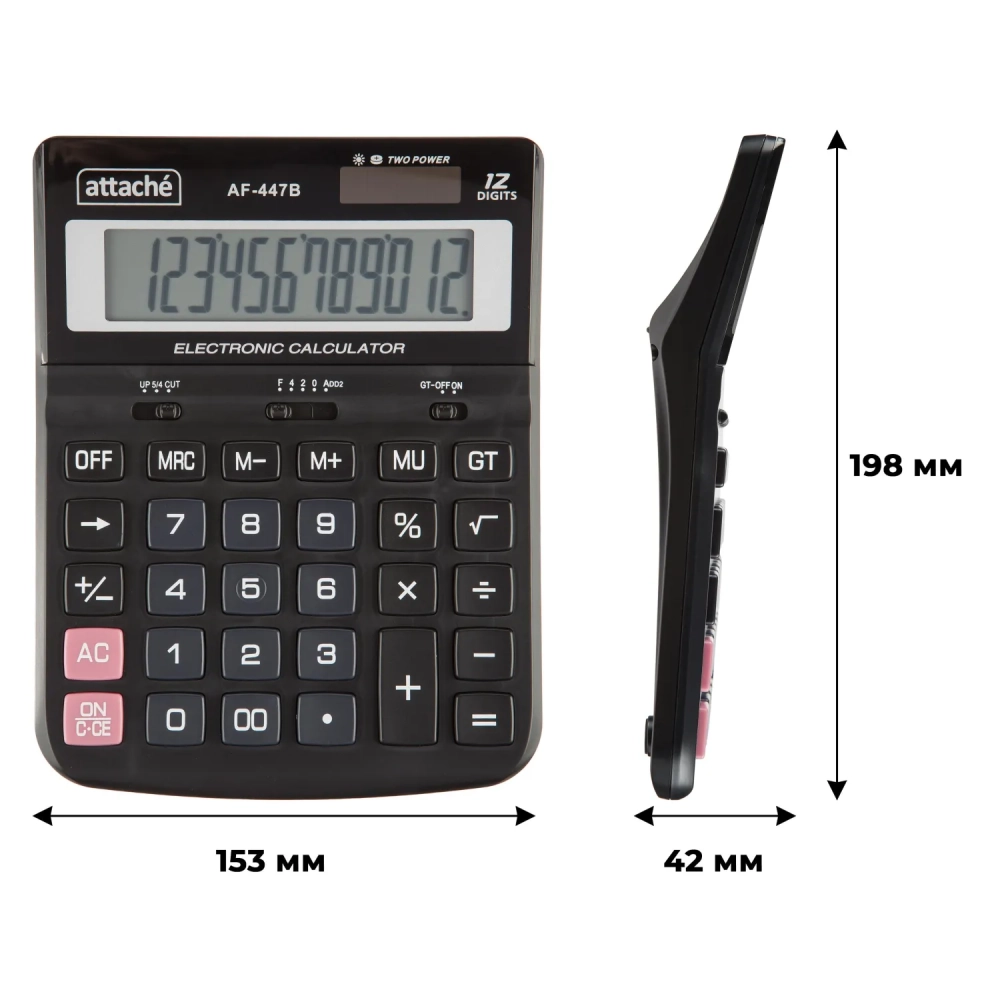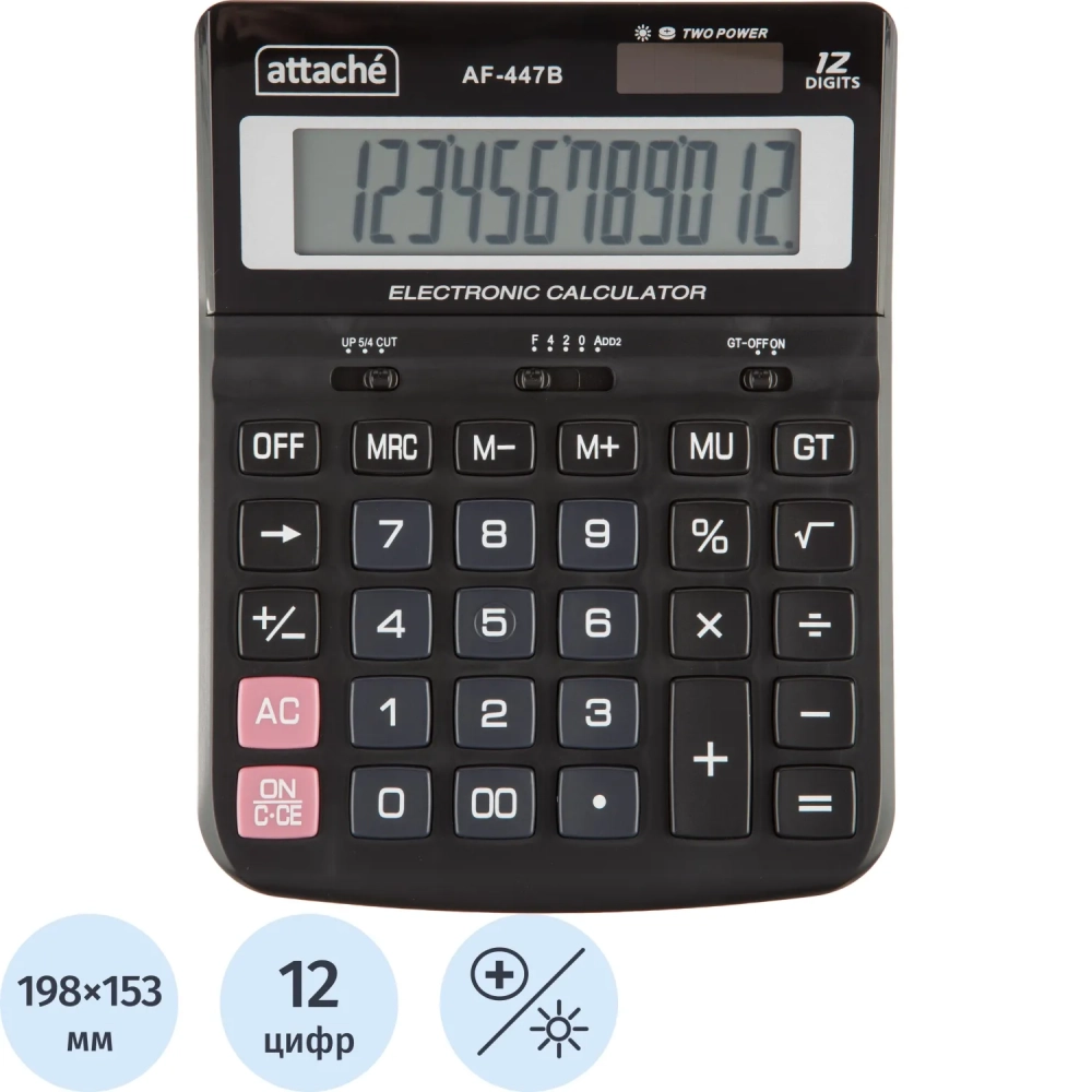 Калькулятор настольный ПОЛНОРАЗМ Attache AF-447B,12р,дв.пит,черн,198x153x42