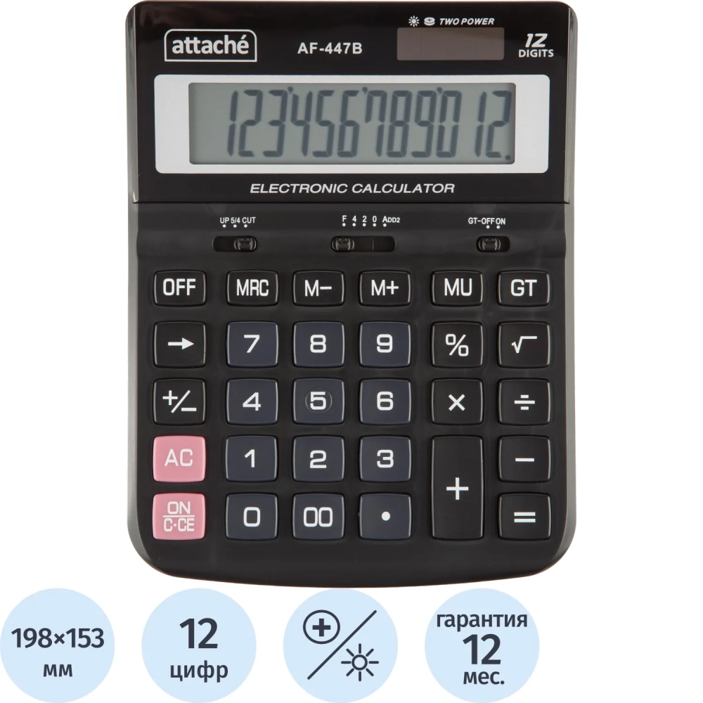 Калькулятор настольный ПОЛНОРАЗМ Attache AF-447B,12р,дв.пит,черн,198x153x42