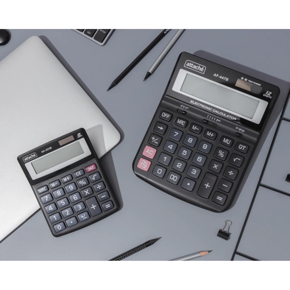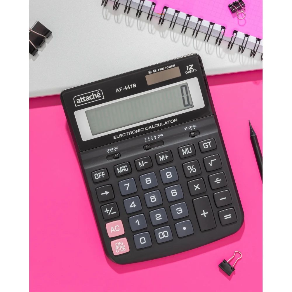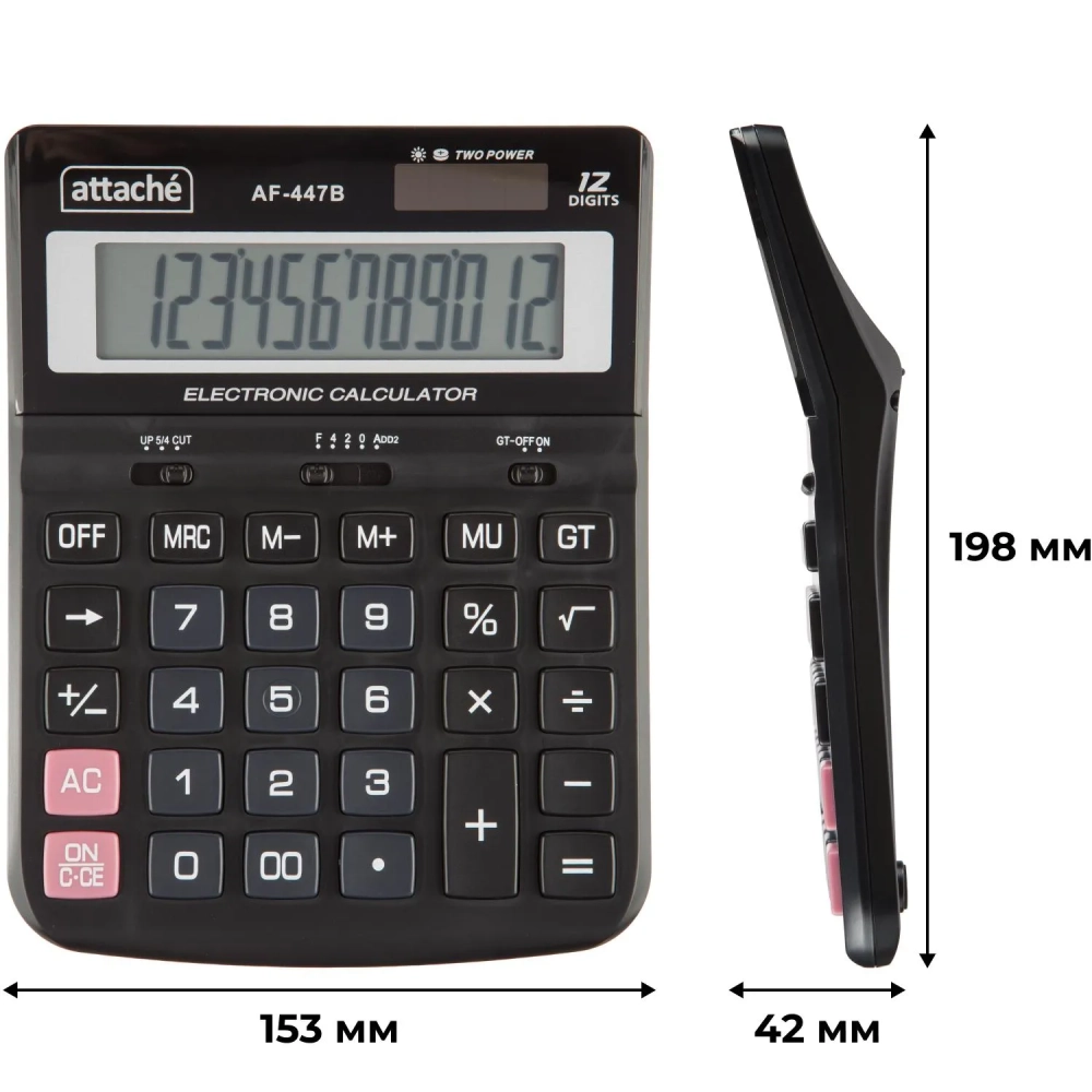 Калькулятор настольный ПОЛНОРАЗМ Attache AF-447B,12р,дв.пит,черн,198x153x42