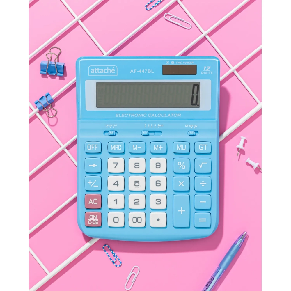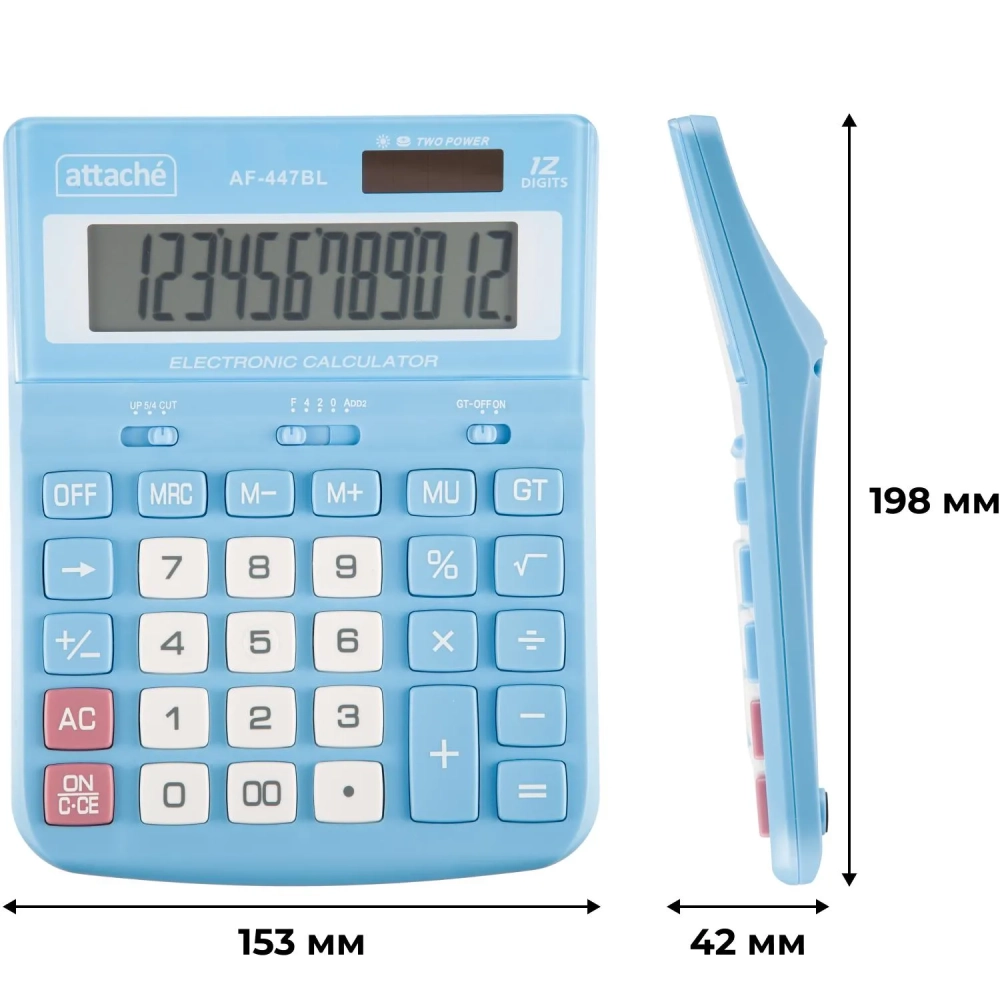 Калькулятор настольный ПОЛНОРАЗМ Attache AF-447BL,12р,дв.пит,гол,198x153x42