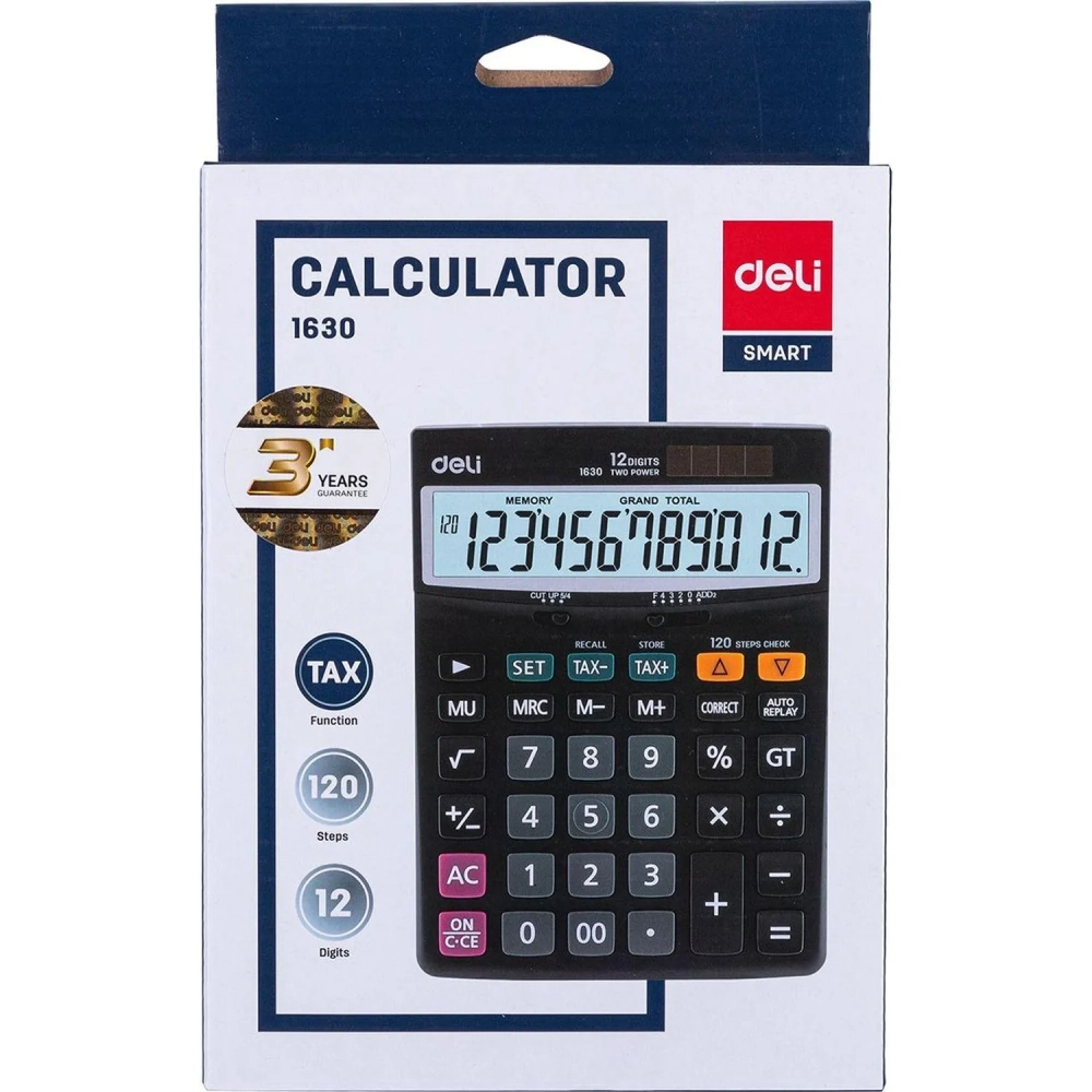 Калькулятор настольный ПОЛНОРАЗМ. Deli E1630, 12-р, дв.пит,188x140мм,черн