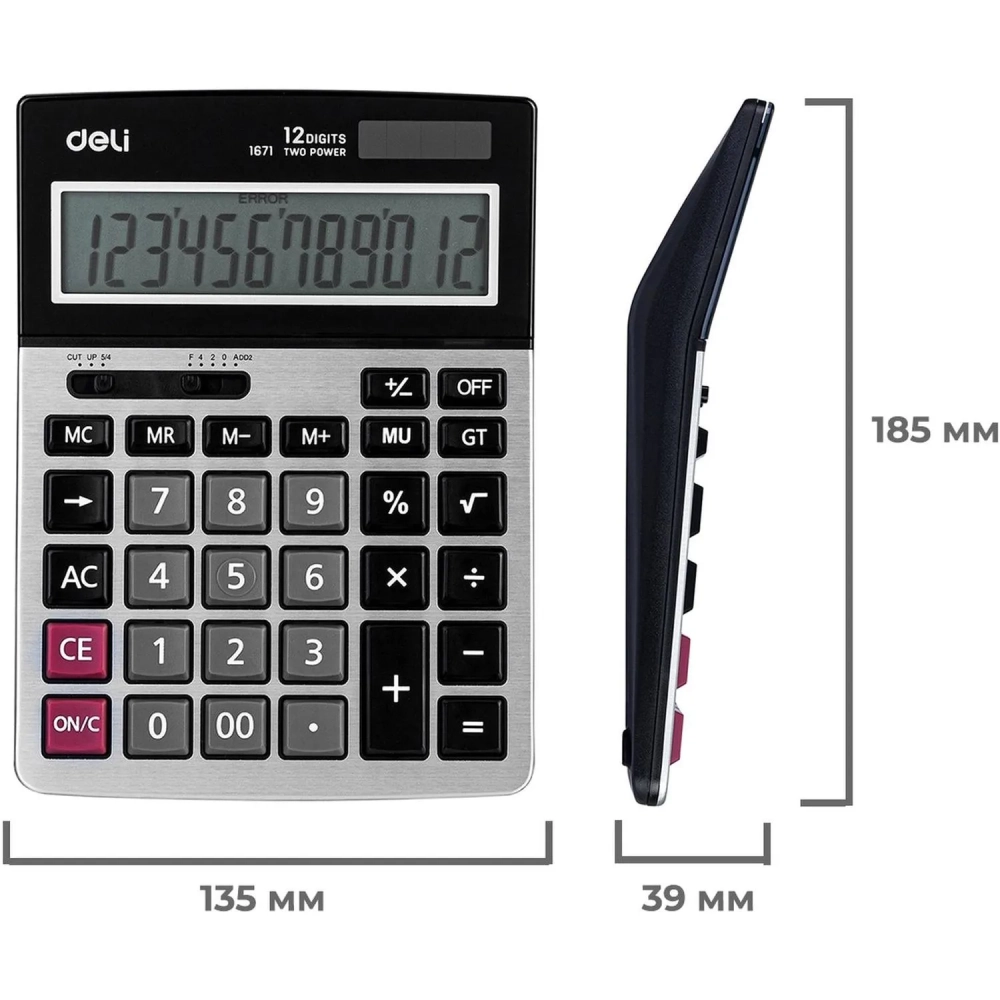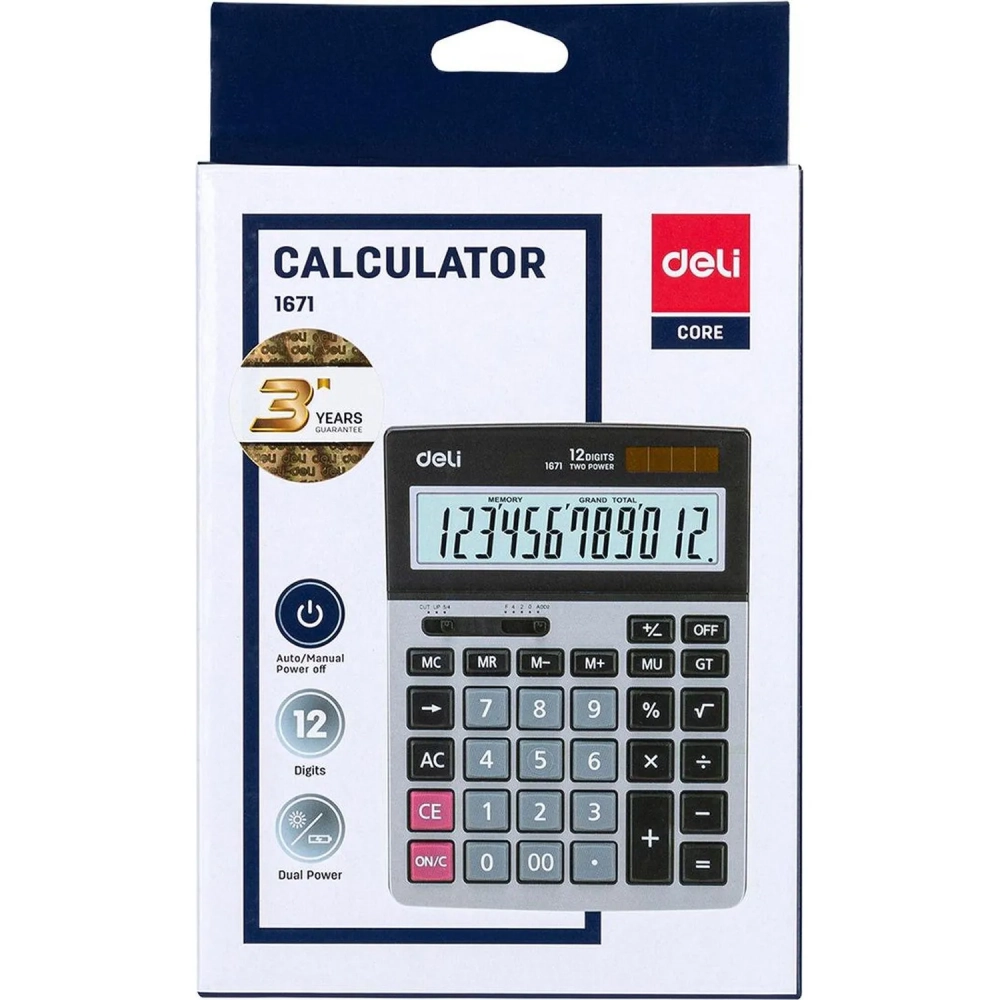 Калькулятор настольный ПОЛНОРАЗМ. Deli E1671, 12-р,дв.пит,185x135мм,мет,срб