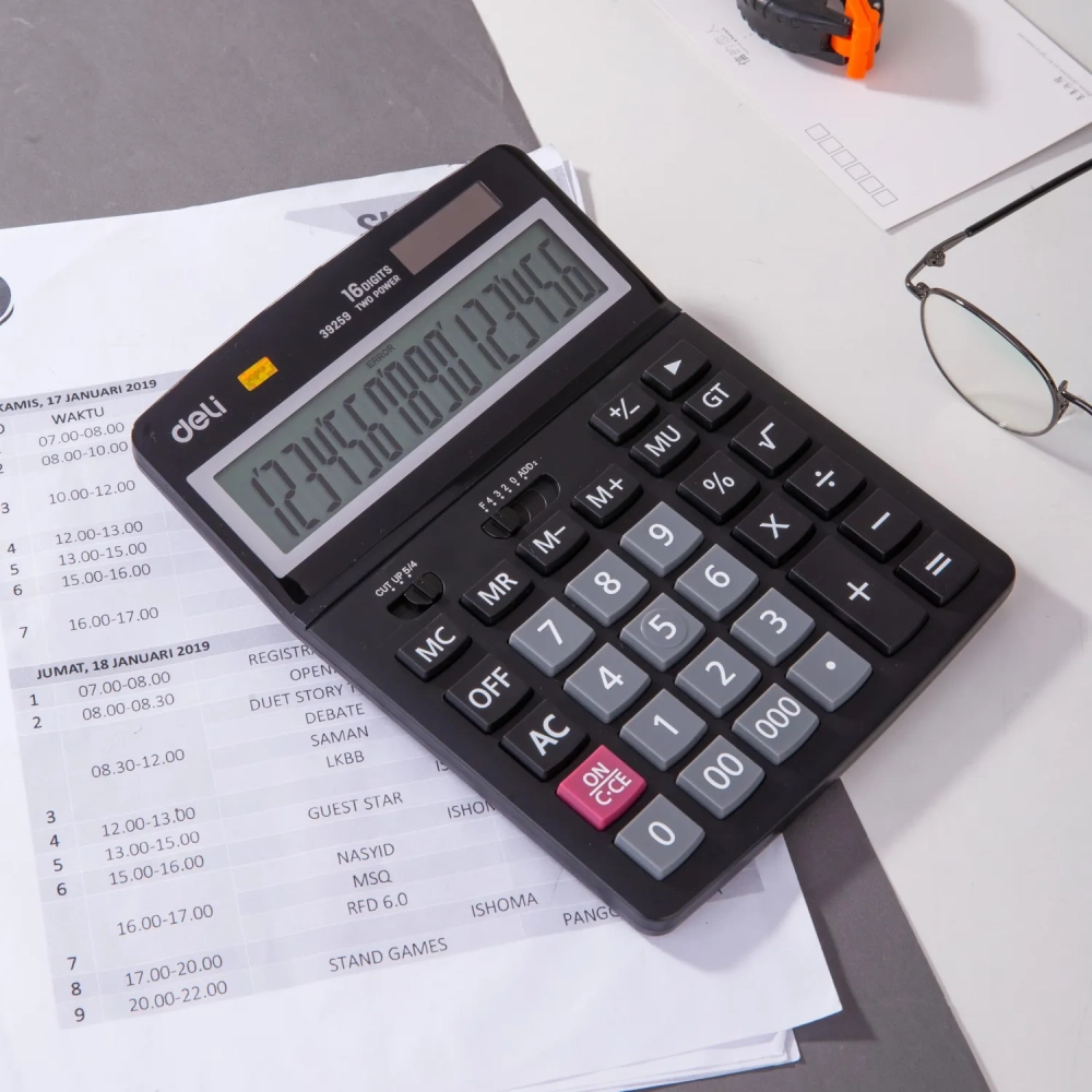 Калькулятор настольный ПОЛНОРАЗМ. Deli E39259,16-р, дв.пит,193x149мм,черн