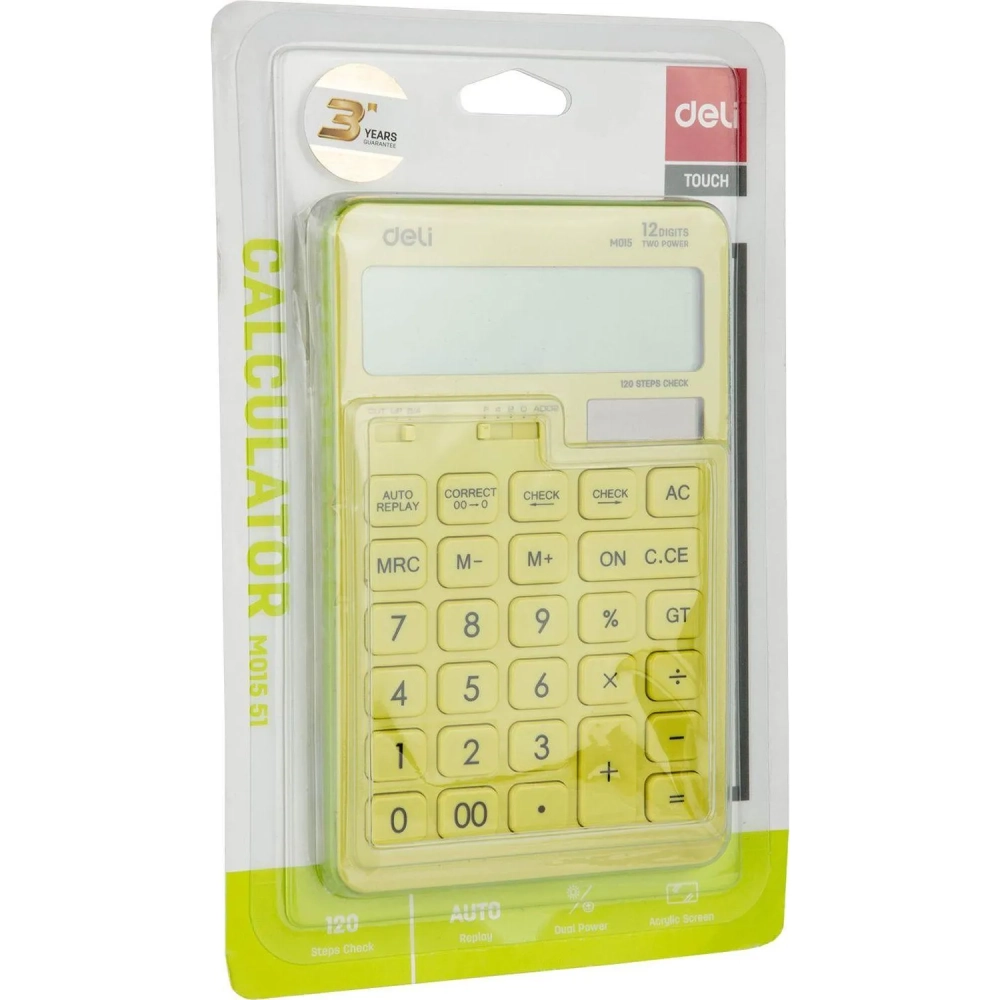 Калькулятор настольный ПОЛНОРАЗМ. Deli EM01551, 12-р,дв.пит,175х108мм, желт